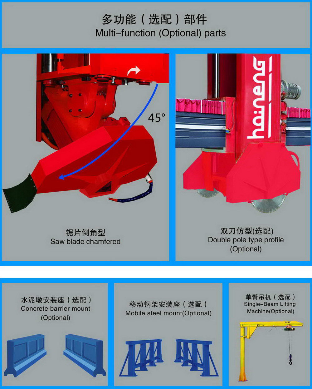 Optional with 360-degree rotation for automatic positioning with every 45 degrees, mainly used for cutting Rectangle,