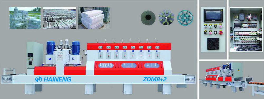 Esta máquina se utiliza principalmente para el procesamiento de tiras estrechas, placas de tiras estrechas, bordillos y otras tiras de piedra de fijación y pulido.