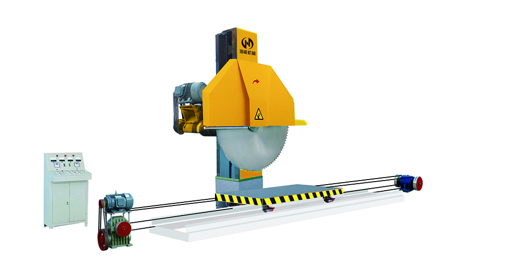 本机锯片进出、升降,工作台进给通过变频无极调速,石料横向自动切割,工作效率高。