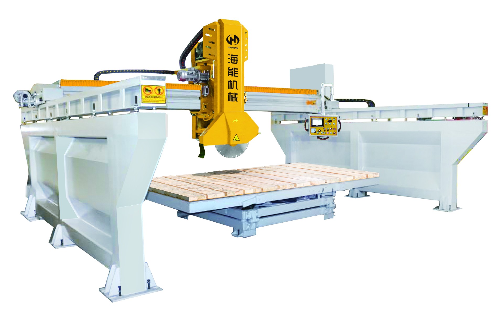 主要控制元件均果用国际品牌元件,横梁采用油浸式双V型轨道,横向走刀果用无极调速、纵向分片机构果用高